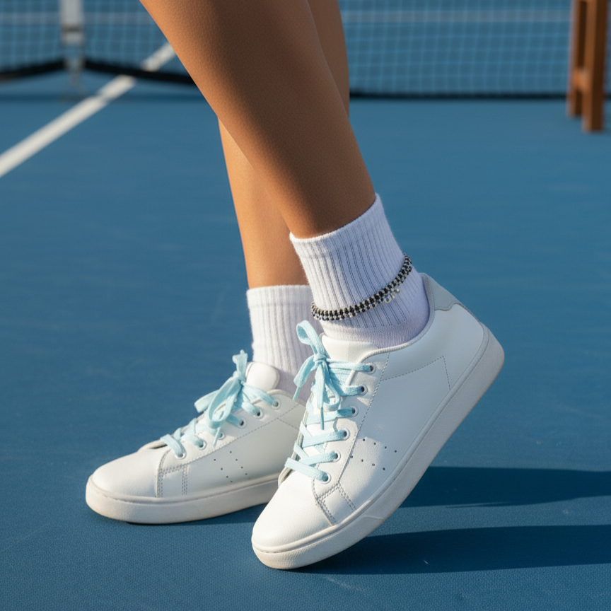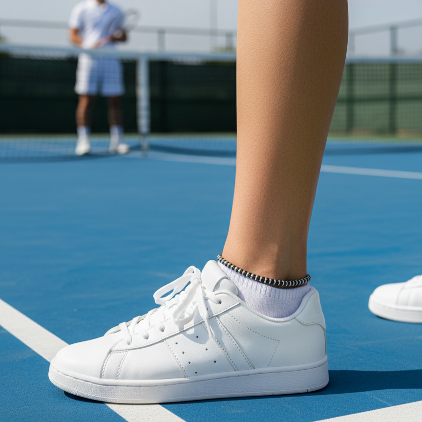 Built for easy, everyday styling, this sterling-silver anklet uses alternating bright and oxidized beads for subtle contrast. It sits neatly over socks or on bare skin and adjusts for a secure, comfy fit. Sporty, minimal, and gift-ready your go-to ankle accessory from court to coffee.